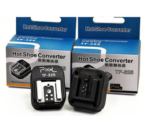 Адаптер на горячий башмак Pixel TF-325 предназначен для установки вспышек со стандартным горячим башмаком на камеры Sony Alpha и Minilta Dynax c нестандартным горячим башмаком. Переходник имеет разъем для подключения кабеля с PC-разъемом. Использование TF-325 с высоковольтными вспышками не предусмотрено. Нет поддержки режима TTL и других автоматических функций.