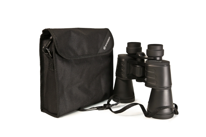 Тем, кто постоянно носит очки, рекомендуется настроить под себя диоптрийную силу окуляров — Bresser Hunter 10x50 имеет такую функцию. Вместе с биноклем покупатель получает футляр-чехол.