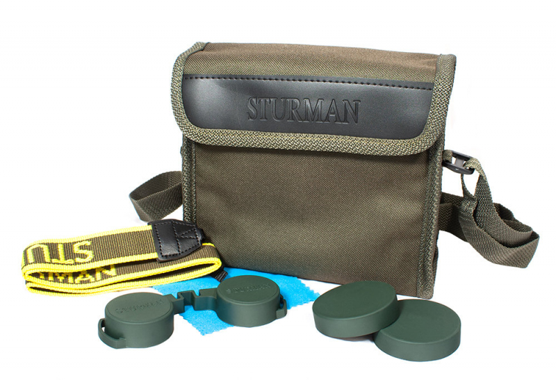 Конструктивные особенности бинокля Sturman 7-21x40Ударопрочный корпус бинокля Sturman 7-21x40 изготовлен из сплавов алюминия, устойчив к деформациям и резким перепадам температур. Нескользящее резиновое покрытие играет роль дополнительной защиты от механических повреждений и обеспечивает хороший хват. Использование оборачивающей системы на базе призм Porro позволяет получить объёмное и контрастное изображение при минимальных потерях света. Для усиления яркости и контрастности на поверхность линз нанесено многослойное просветляющее покрытие. Благодаря рычажковому механизму бинокля происходит плавная смена увеличения в диапазоне от 7х до 21х, соответственно, меняется значение таких параметров как диаметр выходного зрачка, светосила и поле зрения. При минимальной кратности 7х наиболее удобно осуществлять общий обзор и поиск объектов, при максимальной кратности 21х – проводить детализацию выбранных объектов. Для удобной настройки предусмотрена регулировка межзрачкового расстояния, наведение резкости с помощью механизма центральной фокусировки и диоптрийная коррекция правого окуляра. Обратите внимание, что после каждого изменения увеличения необходимо провести перефокусировку изображения. Бинокль Sturman 7-21x40 весит около 0,8 кг, что делает затруднительным длительное наблюдение с рук. Поэтому для удобства эксплуатации и уменьшения дрожания рук рекомендуем устанавливать прибор на штатив с помощью специального адаптера (не входит в комплект поставки), диаметр штативного гнезда ¼ дюйма. Комплект поставки бинокля Sturman 7-21x40Поставляется в комплекте с защитными крышками объективов и окуляров, ремешком и футляром для хранения. Штативный адаптер приобретается дополнительно. Технические характеристики бинокля Sturman 7-21x40