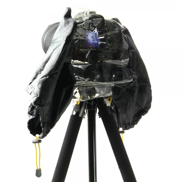 Чехол защищает камеру и объектив от внешних атмосферных воздействий и позволяет вести съёмку даже в сильный дождь, снег, ветер с песком и пылью. Данная модель чехла позволяет вести съемку с использованием 200 мм объектива, при этом установив фотоаппарат на штатив, монопод или проводя съемку с рук. Два рукава дают полный доступ к органам управления на камере и на объективе. Окно для объектива оснащено плотной манжетой. RC702 обеспечивает полную защиту от влаги, дождя и снега. Прозрачный материал позволяет просматривать отснятый материал на ЖК экране, упрощает управление камерой и контроль параметров съемки. Подходит для использования с зеркальным фотоаппаратом и объективом (с фокусным расстоянием до 200 мм). |