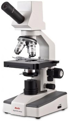 Микроскоп со встроенной цифровой камерой, является великолепным оборудованием как для учебных целей, так и для лабораторных исследований. Цифровой микроскоп состоит из: монокулярной головной части со встроенной цифровой камерой (разрешение 800х600 пикселей) с широкоугольным окуляром WF10x/18 мм с указателем. Комбинации четырех DIN ахроматических объективов, включая 100х Oil, фокусируемого конденсора Аббе N. A. 1.25 с ирисовой диафрагмой, механического предметного столика с двухкоординатным перемещением препарата и встроенной цифровой камерой для вывода изображения наблюдаемого объекта на экран компьютера. Кроме того, в системе подсветки используется светодиод, что позволяет избежать многих проблем, вызываемых нагревом лампы накаливания в традиционных системах подсветки, и делает возможным работу с микроскопом в автономном режиме до 50 часов, благодаря встроенным аккумуляторам.