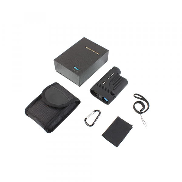 Дизайн и эргономика этого дальномера полностью соответствуют стандартам, которые задали лучшие европейские бренды для приборов этого класса. Дальномер совмещает в себе функции монокуляра с качественной просветленной оптикой 6×26 и лазерного дальномера с дополнительными функциями измерения углов и высоты. Купить лазерный дальномер Veber 6×26 LR 800 можно тем, кто ведет активный образ жизни. Он пригодится на охоте и в стрелковых видах спорта (для введения необходимых поправок на нужную дистанцию стрельбы), походах, горном туризме и т.д. Эргономичные элементы управления и быстродействующая LCD индикация. Питание осуществляется от литиевой батарейки типа CR2 (в комплект не входит). Две кнопки позволяют управлять всеми функциями дальномера, интуитивно понятный интерфейс поможет быстро выбрать режим и произвести замер дистанции / угла. Корпус самого прибора изготовлен из прочного композитного пластика с покрытием софт-тач, корпус блока с оптическими элементами и излучающим лазером — из алюминиевого сплава. Сверху расположены две кнопки управления. С левой стороны на корпусе около окуляра расположено ушко для крепления комплектного ремешка. Резьбовая крышка отсека блока питания снабжена резиновым кольцевым уплотнителем для предотвращения попадания влаги и пыли внутрь прибора.