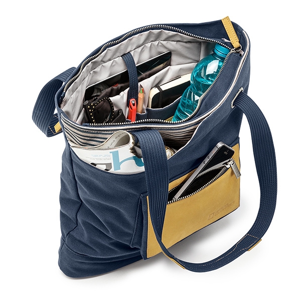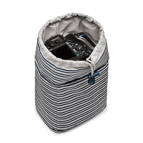Новая Средиземноморская коллекция. Сочетание глубокого синего цвета со светло-серыми полосками и вставками из натуральной кожи добавляют нотку свежести и создают оригинальный стиль каждой сумке. Вместительная повседневная сумка для DSLR камеры с объективом. Она также имеет много места для различных аксессуаров, планшета и личных вещей. Съемный защитный мягкий кофр (16х15х9 см) для дополнительной защиты фотокамеры можно оставить открытым для быстрого доступа. Плечевой ремень со вставками для комфортного использования. Внешние размеры 43х37х13 см, внутренние 41х34х11 см.