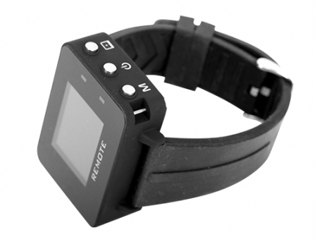 • К камере прилагается пульт дистанционного управления с дисплеем, который носят на руке, как часы. Радиус действия пульта – до 15 м.