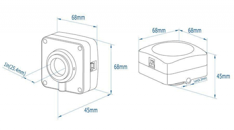 • Корпус цифровой камеры ToupCam U3CMOS08500KPA изготовлен из анодированного алюминия. Для защиты сенсора используется IR-CUT фильтр высокого качества (отсекает все инфракрасное излучение от 700 -750 нм).