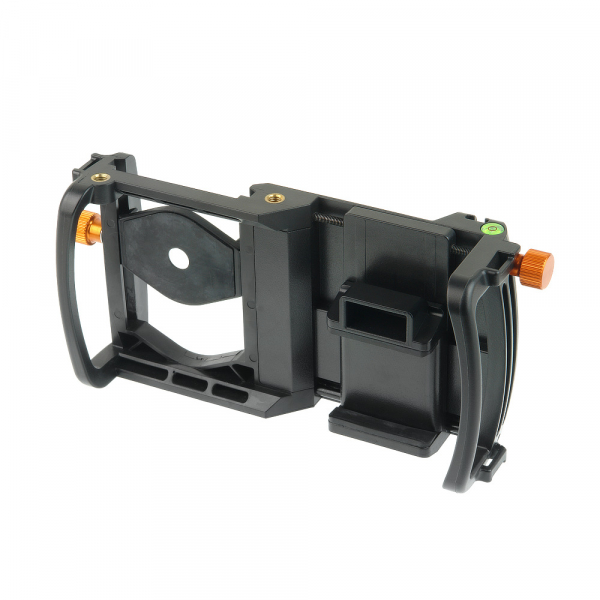 Клетка GreenBean Phone Cage WA для смартфона GreenBean Phone Cage WA – клетка для видеосъемки с помощью смартфона/камерафона с использованием широкоугольного объектива и макролинзы. Прочная эргономичная конструкция позволяет вести съемку с мобильного устройства и получать качественное изображение как при использовании профессионального оборудования. Удобный двуручный хват и надежная фиксация смартфона в подпружиненном держателе с резиновыми накладками оптимизируют съемочный процесс и помогают в итоге получить более четкое и плавное изображение. Кнопка Bluetooth (под правую руку) упрощает управление съемкой, исключает возможные рывки при запуске и окончании записи. Пузырьковый уровень как на профессиональных видеоштативах позволяет даже при экшн-съемке следить за положением камеры и не заваливать горизонт. Два регулировочных винта с крупными ребристыми головками помогают точно совместить камеру с прикрепленным к клетке объективом. Одним регулируется положение смартфона по горизонтали, другим – смещение адаптера с закрепленным на нем объективом по вертикали. Установить осветитель, микрофон и другие дополнительные устройства из ассортимента GreenBean можно в отверстия 1/4” с латунными втулками на верхней панели клетки. Для крепления подойдут головы, кронштейны и переходники. Закрепить клетку на штатив, мини-штатив, слайдер или стедикам позволяет посадочное гнездо с латунной втулкой под винт 1/4”. Это обеспечит стабильность изображения и поможет использовать преимущества работы с различными объективами, например с входящими в комплект широкоугольным объективом 0,5х и макролинзой 10х. С Phone Cage WA качественное видео сможет снять и динамичный участник рейва, и терпеливый мирмикипер. Петли на верхних углах клетки служат для крепления нашейного ремня (в комплект не входит), который вовремя подстрахует и даст отдых рукам оператора.