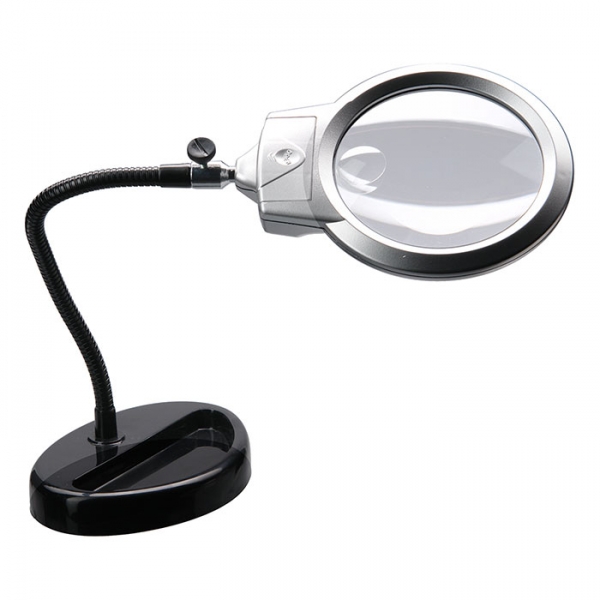 Настольная лупа с LED подсветкой широко применяется в радиомонтажных и ювелирных мастерских, в косметологических кабинетах, при работах с документами, в бытовых целях - для чтения, рисования, шитья, вышивания и т. д. Имеются две линзы: основная (диаметр 107 мм) с увеличением 2,25 крат и дополнительная (диаметр 25 мм) с увеличением 5 крат. В качестве подсветки используются 2 ярких светодиода, питание осуществляется от трех батареек типа ААА (в комплект не входят). Гибкая штанга (длина 25 см) позволит точно установить лупу на удобном для наблюдения расстоянии. В пластиковом корпусе основания находится металлическая вкладка, в которую вкручивается штанга - для долговечной эксплуатации и предотвращения опрокидыванию. Также имеется лоток для мелких принадлежностей.