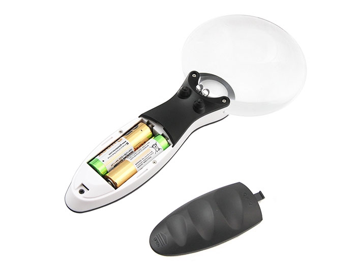 Подсветка — два светодиода. Питание — 2 батареи AA (в комплект не входят). Чехол в комплекте. Технические характеристики Увеличение, крат: 3-6 Диаметр линзы, мм: 90 Материал линзы: акрил Материал корпуса: пластик Вес, г: 80 |