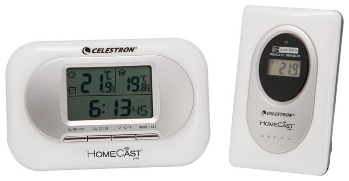 Компания Celestron предлагает полный ассортимент цифровых погодных станций для дома, дачи и офиса. Все метеостанции оснащены внешним беспроводным датчиком, передающим собранные данные на приемник, где информация отображается на жидко-кристаллическом экране. Приемник можно поместить в любой комнате, будь то кухня, гостиная, спальня, столовая, офис или иное помещение. Комнатная и уличная температура, а также другие погодные данные, легко читаются с LCD-экрана. Каждая метеостанция имеет свои уникальные особенности, но все созданы по самым современным, передовым технологиям. Особенности метеостанции: