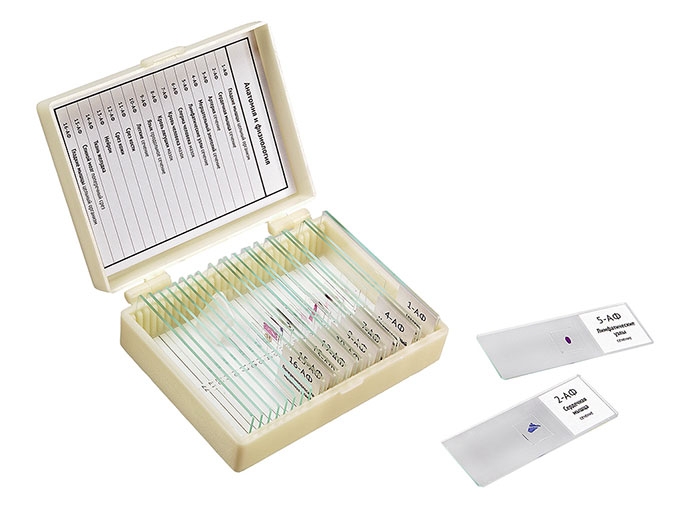 Наборы готовых препаратов предназначены для самостоятельного изучения и проведения школьных лабораторных работ по основным курсам биологии:
