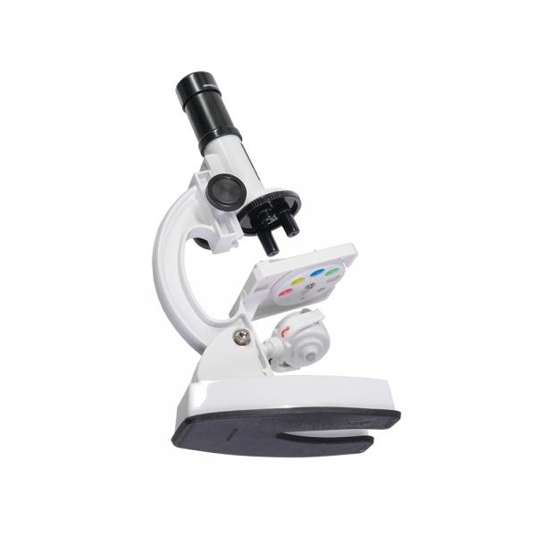 Отличный подарок для ребёнка, желающего погрузиться в увлекательный мир микробиологии. Микроскоп включает адаптер для смартфонов, чтобы можно было записывать и делиться своими последними научными открытиями, а также располагает осветителем с двойным действием – когда он повёрнут зеркалом вверх, освещение происходит путём солнечного света. Один поворот, и вот у вас уже освещение от лампы, встроенной в другую сторону осветителя (батарейки в комплект не входят). Это может быть полезно при пасмурной погоде или при отсутствии достаточного освещения в комнате. В комплекте к микроскопу идёт одно предметное стекло с уже заранее подготовленным препаратом, и целых 12 предметных стёкол для приготовления своих микропрепаратов, с чистыми стикерами для маркировки. Прямо как в настоящей лаборатории! Микроскоп оборудован тремя объективами 10x, 45x и 90x для достижения увеличения 100x, 450x и 900x.