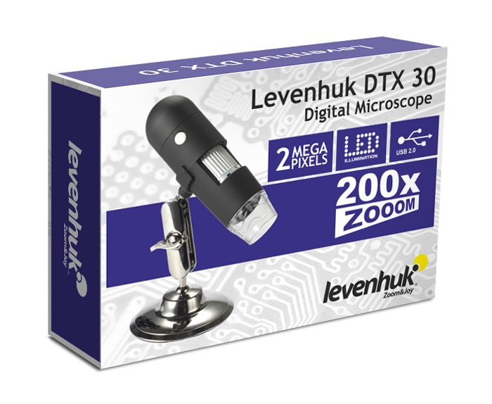 Микроскоп Levenhuk DTX 30 – это современный USB-микроскоп с возможностью фото- и видеосъемки изучаемых образцов, оснащенный 2-мегапиксельной камерой и имеющий переменное увеличение в диапазоне от 20 до 230 крат. Модель может использоваться в самых разных областях: в радиоэлектронике, ювелирном деле, биологии, зоологии и др.
