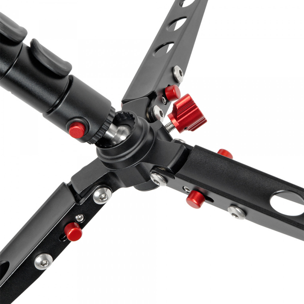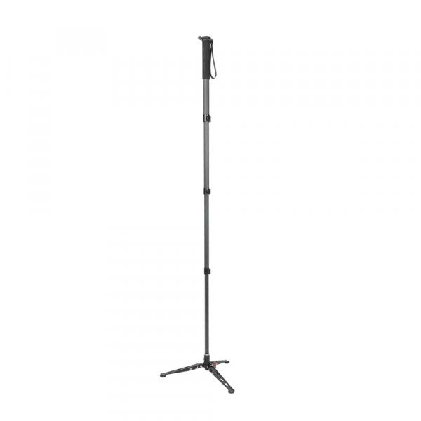 Четыре секции из карбона с клипсовыми зажимами из ABS пластика. Диаметр секций — 32, 28, 25, 22 мм. При ослаблении клипсового фиксатора — возможна регулировка зажима винтом под шестигранный ключ. На верхней секции предусмотрены: накладка-рукав из вспененного материала для комфортного удержания монопода в холодное время года и кистевой ремень для удобства удержания монопода рукой. Круглая площадка верхней базы монопода имеет реверсивный винт 1/4" - 3/8", на который крепится видеоголовка, а при необходимости непосредственно камера. Пузырьковый уровень находится на круглой площадке и имеет возможность вращаться вокруг монопода.