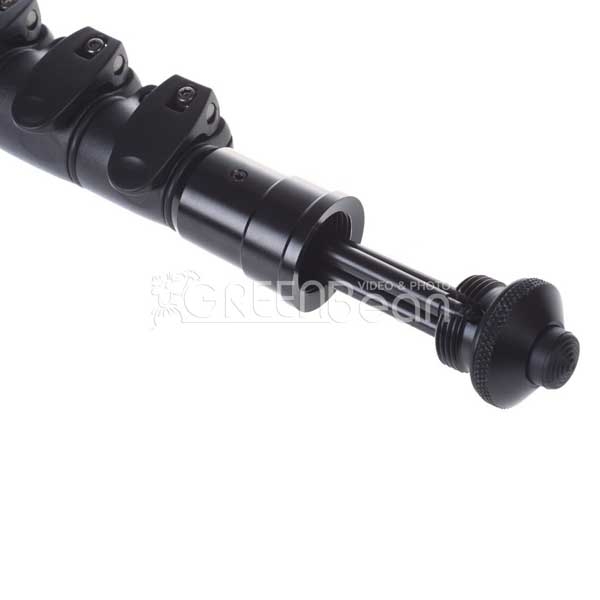 Мощный четырехсекционный алюминиевый корпус сочетает в себе такие качества, как прочность и легкость. Благодаря фторопластовым вставкам, секции при сложении и выдвижении скользят плавно, с дозированным усилием. В нижней секции монопода спрятаны 3 дополнительные металлические ножки, позволяющие ему стоять самостоятельно и превращающие монопод в . Верхняя секция модели имеет муфту из вспененного теплоизолирующего материала, которая предупреждает скольжение монопода в руках фотографа и делает комфортабельной эксплуатацию модели в холодную погоду. Платформа диаметром 60 мм, с реверсивным винтом 1/4" — 3/8", позволяет установить камеру или головку. Используя, дополнительно приобретаемую штативную видео голову (например, GreenBean VH 34), можно получить плавные кадры при съемке в движении или панорамировании. Рычажная система фиксации секций опоры является регулируемой, используя шестигранный ключ, идущий в комплекте, вы можете настроить усилие фиксации замков по своему предпочтению. Монопод снабжен ремешком для фиксации на руке (это предупредит падение монопода с камерой, если фотограф случайно выпустит его из рук) и карабином для крепления на поясном ремне или рюкзаке.