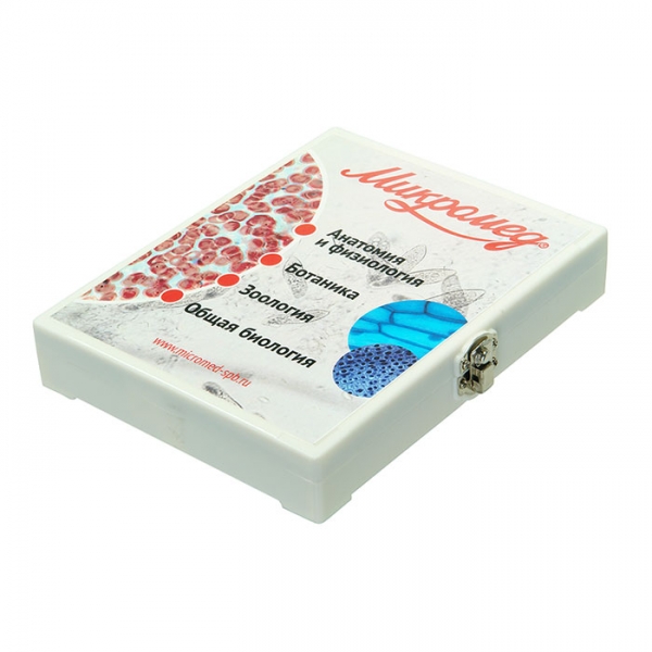Набор состоит из готовых микропрепаратов в количестве 74 шт., предметных и покровных стекол для самостоятельного изготовления препаратов.