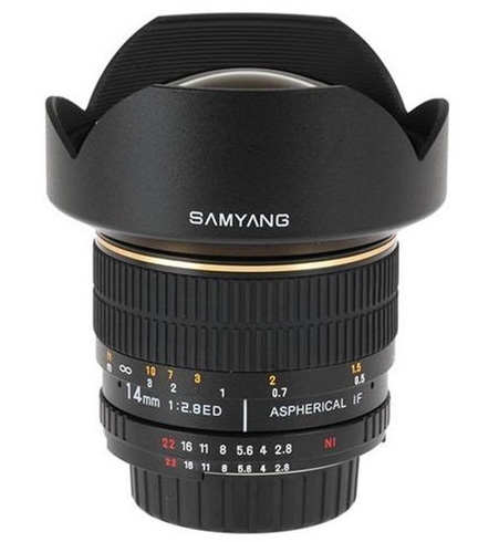 Объектив Samyang 14mm f/2.8 - широкоугольный полноформатный объектив с фиксированным фокусным расстоянием и с ручной фокусировкой. Обладает высокой светосилой и небольшим размером, выполнен в прочной металлической конструкции.