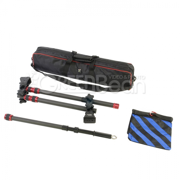 На опоре крана и опоре камеры справа и слева расположены отверстия под винты 1/4" и 3/8", что позволяет закрепить ЖК-монитор, микрофон или другое вспомогательное оборудование. Для противовеса используются грузы-блины со стандартным посадочным диаметром (грузы в комплект не входят) или специальная сумка для груза (сумка в комплекте). Кран комплектуется удобным чехлом с ручками и наплечным ремнем. С собственным весом крана в 2,5 кг и транспортировочной длиной в 78 см легко умещается в любом багаже.