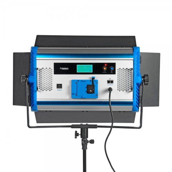 Осветитель оборудован отсеком для аккумулятора V-mount (аккумулятор приобретается отдельно) и комплектуется сетевым адаптером для питания от сети 100-240 В.