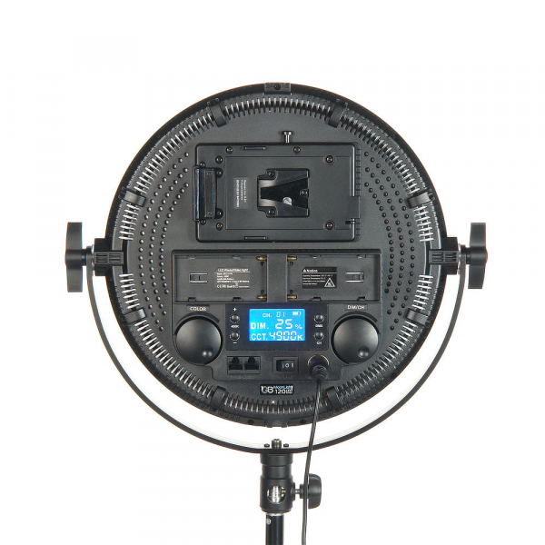 Мощный светодиодный осветитель GreenBean MoonLight 120 LED bi-color - круглая световая панель с изменяемой цветовой температурой. Источники света — 600 ярких SMD светодиодов с высоким уровнем цветопередачи (CRI более 95). Максимальная мощность — 67 Вт. В отличие от традиционно используемых софтбоксов, осветитель GreenBean MoonLight имеет абсолютно круглую матовую (через которую не видны излучающие светодиоды) поверхность, малые габариты и может создавать красивые круглые блики на глянцевых отражающих поверхностях. В осветителе используется две группы светодиодов с температурой 3200 К и 5600 К, каждая номинальной мощностью 60 Вт. Электрическая схема блока питания осветителя ограничивает общую мощность световой панели величиной 67 Вт. Установив (зафиксировав) необходимую мощность панели (максимум 67 Вт), пользователь может плавно менять цветовую температуру. Регулировка мощности бесступенчатая — от 10 до 100%