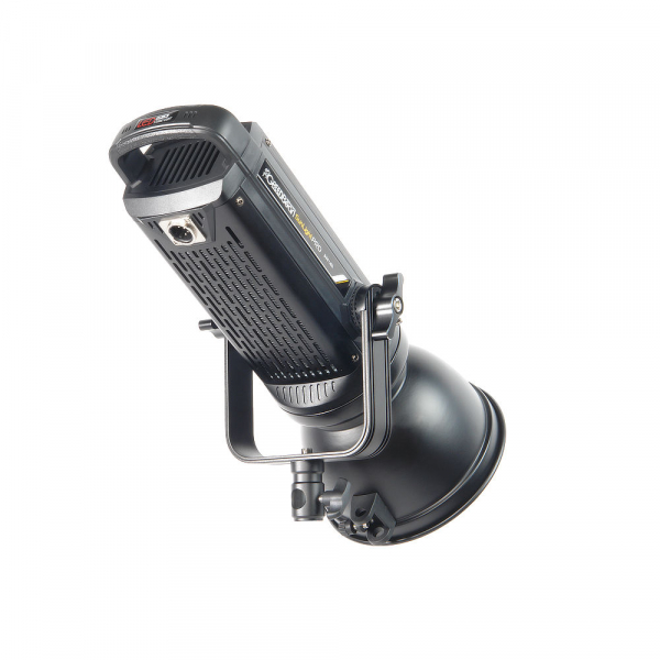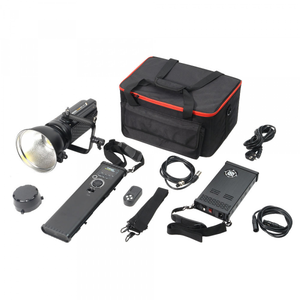 Малошумные вентиляторы и автоматическая защита от перегрева позволяют длительно использовать осветитель при полной мощности. Рефлектор диаметром 175 мм крепится на осветитель посредством байонета Bowens. Его внутренняя поверхность имеет серебристое фактурное покрытие. На рефлекторе предусмотрен держатель для зонта. Для питания осветителя и блока используется сетевой адаптер или 2 аккумуляторные батареи V-mount (приобретаются отдельно). Сетевой адаптер с выключателем снабжен ремнем для переноски или подвешивания на стойку. Металлический корпус осветителя устойчив к механическому воздействию. Металлический кронштейн типа «лира» позволяет отрегулировать наклон осветителя и надежно закрепить в нужном положении с помощью фиксатора с зубчатым соединением и резиновой прокладкой.