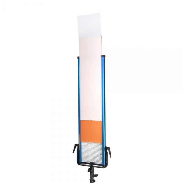 Поворотная лира с возможностью смещения вдоль корпуса, позволит установить осветитель на стойку или подвесить на потолочные системы крепления. Бесшумная конвекционная система охлаждения обеспечит продолжительную работу прибора и не помешает записи звука при съемке. Питание от сети или от аккумулятора V-mount, для возможности использования как в студии, так и на выездных съемках.