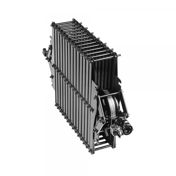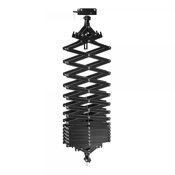 Пантограф Falcon Eyes # 3335 Пантограф Falcon Eyes #3335 предназначен для крепления осветительных приборов и другого оборудования (генераторы тумана, снега, мыльных пузырей) на потолочной подвесной системе Falcon Eyes А 3303. Пантограф изготовлен из алюминиевого сплава и при своих габаритах весит всего около 7 кг. Толщина рычагов пантографа 3 мм. Шарниры изготовлены из стали. Крепление Крепление к верхней каретке и крепление оборудования к пантографу осуществляется стальным пальцем диаметром 5/8 дюйма (16 мм) и имеет защитный винт исключающий выпадение пальца каретки. Дополнительно, оборудование на пантографе страхуется от падения стальным тросиком (Д=2 мм) с металлическим карабином. Амортизатор Возможность регулировки амортизатора позволяет настроить нагрузку от 0 до 15 кг. Для обеспечения плавности движений установленного оборудования, необходимо настроить упругость амортизатора в зависимости от массы груза (если нагрузка большая, амортизатор должен быть жестким; в противном случае, амортизатор должен быть ослаблен). Регулировка осуществляется комплектным ключом. Ролики для подвесной потолочной системы Нейлоновые колеса на стальной оси выдерживают большие нагрузки. Плавность хода обеспечивается подшипниками качения. Для безопасного использования в конструкции предусмотрен механизм торможения. Надежность и долговечность подвижных частей пантографа обеспечивают стальные шарниры, отсутствие пластика в элементах несущих нагрузку, металлические заклепки, увеличенная толщина металла рычагов пантографа, подшипники качения в конструкции верхней каретки, долговечный материал роликов.