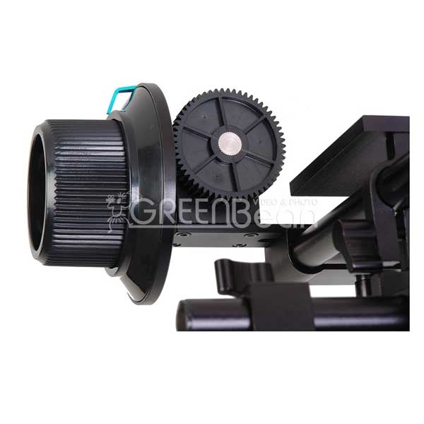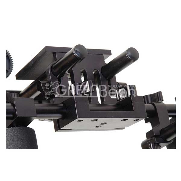 К фронтальной части узла площадки камеры крепятся две направляющие длиной 190 мм, на которые устанавливается Follow Focus (F.F.). Для удобства работы с разными моделями камер и объективов, посадочный винт для камеры может перемещаться вдоль по площадке в пределах 35 мм, а механизм Follow Focus смещаться в поперечном направлении в пределах 65 мм; кроме того, зубчатое колесо редуктора F.F. (АВС — пластик) возможно переставить на другую сторону редуктора. Это позволит работать с самыми короткими (в длину) объективами. В RIG03 учтены много «мелочей», которые делают его надежным помощником оператору и гарантируют долгий срок службы: обрезиненная поверхность площадки для камеры, большое колесо вращения F.F. (с дозированным усилием), кожа и неопрен в наплечнике, который «мертво» крепится к направляющей. Металлические барашки надежно фиксируют элементы RIGа благодаря пружинящему эффекту узлов фиксации. Длина направляющей плечевого упора — 300 мм, поэтому с RIG03 комфортно работать операторам ростом до 190 см, а удобный доступ ко всем элементам конструкции позволяет быстро переводить этот плечевой обвес в походное положение.