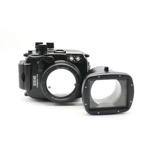 Подводный бокс (аквабокс) Meikon для фотоаппарата Canon EOS M3 Kit (18-55 мм) Подводный бокс (Аквабокс) для фотоаппарата Canon EOS M3 со сменными портами. Байонет Type3. Приятно удивит подводных фотографов простотой использования и надежностью. Глубина погружения данного бокса до 40 метров, используемые материалы при изготовлении - прочный поликарбонат, закаленное стекло, нержавеющая сталь. Два оптоволоконных порта позволяют подключить к боксу внешние подводные вспышки для получения ярких и красивых фотографий подводного мира. Подводный бокс имеет сертификат IPX8 & CES. В комплекте поставляется со сменными портами к объективам Canon EOS-M 18-55 mm или Canon EOS-M 22mm. Аквабокс имеет удобную эргономику и поддерживает полный функционал фотоаппарата.