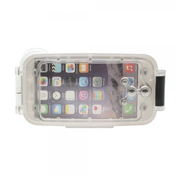 Подводный бокс (аквабокс) Meikon для iPhone 7 Plus (white) Meikon iPhone 7 Plus (white) подводный бокс для Apple iPhone 7 Plus белого цвета - изготовлен из прочного поликарбоната белого и прозрачного цвета. Глубина погружения до 40 метров. Компактный и удобный для любителей снорклинга и дайвинга. Имеет возмость крепления рукоятки и армов для подводных фонарей. Также бокс может использоваться, как защитный чехол для вашего смартфона.