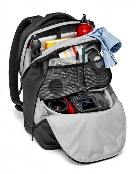 Удобный и компактный многофункциональный рюкзак серии NX. Съемный мягкий отсек в нижней части рюкзака оснащен системой защиты Manfrotto. В нем можно разместить DSLR камеру с установленным зум-объективом, два дополнительных объектива или другие аксессуары, такие как вспышки, светодиодные фонари и т.д. Верхняя часть рюкзака предназначена для личных вещей. Так же можно использовать все пространство рюкзака для личных вещей, достаточно убрать внутренний разделитель. Предусмотрен специальный отсек для 15.6"ноутбука. Так же имеется множество карманов для различных аксессуаров. На внешней стороне рюкзака предусмотрено крепление для штатива серии Compact.