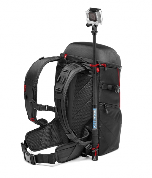 Новинка от компании Manfrotto – рюкзак для экстремальных путешествий. Легкий, компактный и эргономичный. Специальное крепление камеры GoPro для съемки на ходу. Внутренние съемные чехлы для защиты оборудования вмещают до 3 камер GoPro и одной компактной фотокамеры типа Sony A7 с объективом 24-70/4. В рюкзаке можно расположить различные аксессуары и личные вещи. Отделение для ноутбука до 12,9 ". Верхняя крышка рюкзака усилена дополнительной защитой. На вешней стороне рюкзака предусмотрен карман для штатива Pixi. Широкий поясной ремень и дополнительный ремень на груди обеспечивают надежную фиксацию рюкзака при экстремальных приключениях. Дождевой чехол в комплекте. Рюкзак изготовлен их высококачественных материалов. Цвет черный.