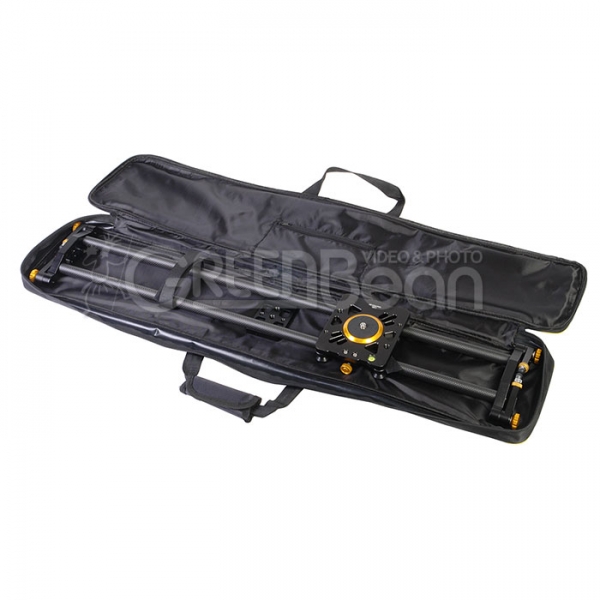 Слайдер GreenBean Glide Track 80 Green Bean Glide Track 80 - легкий и прочный слайдер (глайдтрек) с карбоновыми направляющими для камер весом до 6 кг. Применяется в видеопроизводстве для съемки рекламных роликов, презентационных фильмов, свадебных клипов и другой видеопродукции. Слайдер предназначен для съемки с движущейся точки, установленная на каретке камера плавно передвигается по рельсовым направляющим. Прецизионно изготовленные ролики обеспечивают исключительно плавное движение каретки. Каретка опирается на направляющие с помощью 4 внешних роликов и 2 регулируемых внутренних роликов на подвижном основании, такая конструкция позволяет выбрать зазоры для полного устранения люфта. Опорные ролики изготовлены из прочного полимерного материала. На оси каждого ролика находятся два радиально упорных безлюфтовых подшипника повышенной грузоподъемности, которые не требуют дополнительной смазки. На каретке находится винт диаметром 1/4" (в комплекте переходник 3/8") и отверстия с резьбой диаметром 1/4" и 3/8" для установки вспомогательного оборудования. Сверху на каретке расположен пузырьковый уровень, который поможет выставить слайдер по горизонту. Винтовой фиксатор позволит зафиксировать каретку в определенном положении, а резиновые упоры на торцах каретки предотвратят жесткие удары в крайних положениях. На направляющих снизу в центре расположена монтажная площадка для установки на штатив, на пластине имеются 2 резьбовых отверстия диаметром 1/4" и 3 отверстия диаметром 3/8". Также возможна установка на два штатива, для этого снизу на торцах слайдера имеются отверстия с резьбой диаметром 1/4" и 3/8". Ножки слайдера регулируются по высоте и поворачиваются на 360˚ вокруг оси крепления. Ножки соединяются с основанием с помощью зубчатой муфты, препятствующей проскальзыванию. В узле крепления ножки находится прижимная пружина, если ослабить зажим, то ножка не потеряет своего положения, но позволит отклонить ее ступенчато через зубчатый механизм. На концах ножек расположены вывинчивающиеся на 15 мм наконечники с резиновой опорой.