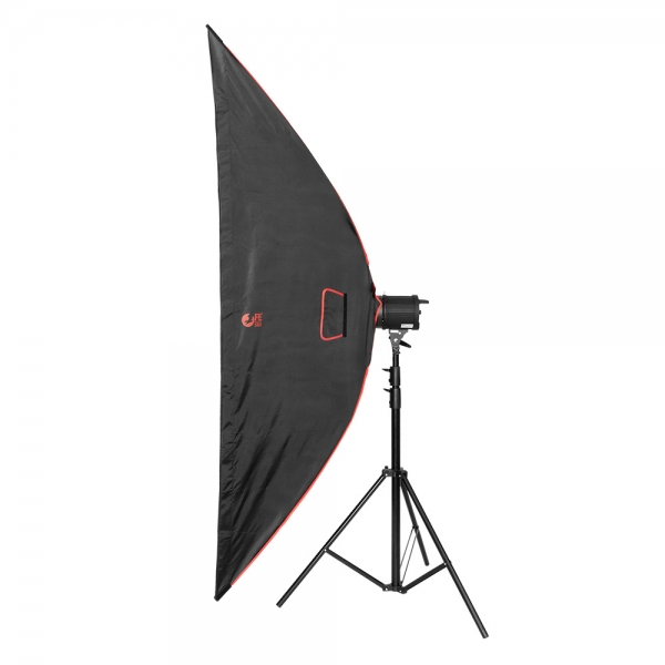 Установленный на приборе софтбокс можно поворачивать на 360 градусов, выбранное положение фиксируется винтом на адаптере. Внешний и внутренний рассеивающие экраны изготовлены из тонких жаропрочных синтетических материалов, крепятся на В комплекте с софтбоксом поставляются соты. С помощью липучки (по всему периметру) соты крепятся к «козырьку» софтбокса. Соты применяется для формирования ограниченного и направленного светового потока с плавным светотеневым переходом от центра к краю светового пятна. Закрытая конструкция позволяет избежать нежелательных бликов и потерь светового потока. Отражатель, с серебристой тканью внутри, обеспечивает равномерную засветку рассеивателя, который в свою очередь, благодаря большой поверхности, смягчает формируемые тени. Дополнительный внутренний диффузор улучшает равномерность светового потока. Наконечники на упругих металлических спицах не повреждают тканевые спицедержатели софтбокса и облегчают сборку конструкции. В комплекте чехол.