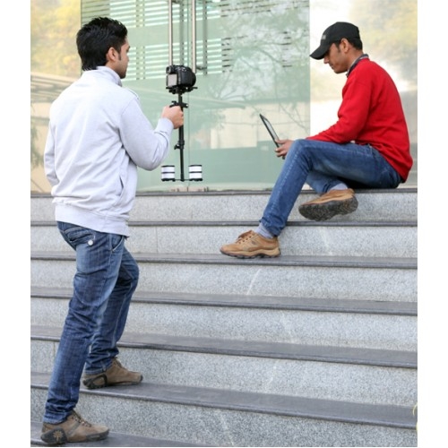 Компактные размеры и небольшой вес стедикама позволяют с легкостью менять его положение. В то же время стедикам прочно и надежно фиксирует камеру. Даже во время самой динамичной съемки можно не беспокоиться о соскальзывании камеры или появлении тряски и вибрации в кадре. Удобная рукоятка с мягким противоскользящим покрытием позволяет точно регулировать положение стедикама и защищает камеру от механических повреждений в процессе работы. Еще одним преимуществом данной модели стедикама является его быстрая и простая сборка в сравнении с ее современными аналогами. Стедикам оборудован мягким подшипником, который позволяет регулировать положение камеры по двум осям.