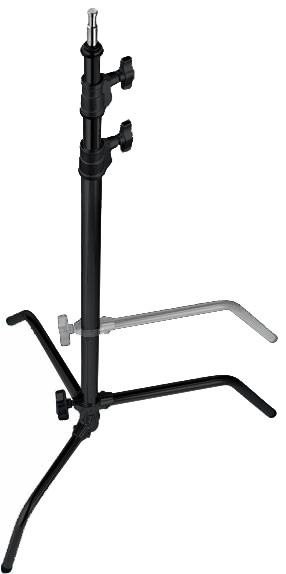 Стойка стальная, трех секционная, для установки оборудования и грип клампов. Одна опора регулируется по высоте для установки на разных уровнях поверхности. Стойки C-Stand (систенды) используются в фото-, теле- и кинопроизводстве для установки осветительного оборудования, держателей (GripHead), как отдельные стойки для отражателей, гобо, флагов и прочих аксессуаров.