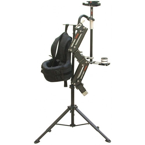 Функция данного штатива состоит в закреплении на нем жилета, пантографа (мех.рука) и стедикамов типа Flycam (и любых которые подойдут - Glidecam и т.п.) в промежутках между съемками. Этот трипод комплектуется специальным адаптером. С одной стороны он крепится на штатив и зажимается болтом. С другой стороны имеет площадку для крепления жилета (наверху), стедикама (справа) и руки(слева). Позволяет отбалансировать стедикам прямо на штативе перед началом съемки. Характеристики: