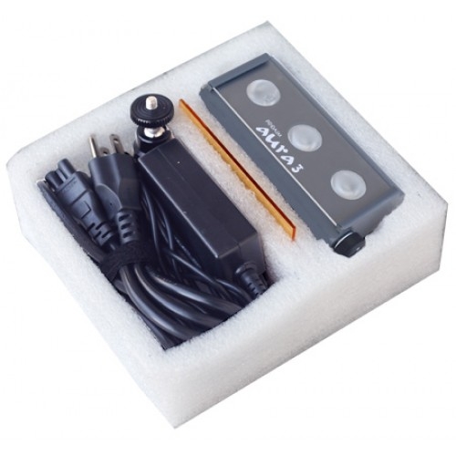 Осветительное оборудование Proaim Aura-3 в своем качестве и высокоточной конструкции на сегодняшний день превосходит все остальные аналогичные устройства, представленные на рынке видеотоваров. Этот свет предназначен для постоянного освещения помещения при съемках. А высокий уровень светоотдачи и низкое энергопотребление делает его абсолютно идеальным и соответствующим всем требованиям современной киноиндустрии. Изначально этот свет предназначается для установки на камеру, но его технические характеристики вполне позволяют использовать его как самостоятельное световое оборудование. Основными преимуществами этой модели являются его портативность, небольшой размер и мощность.