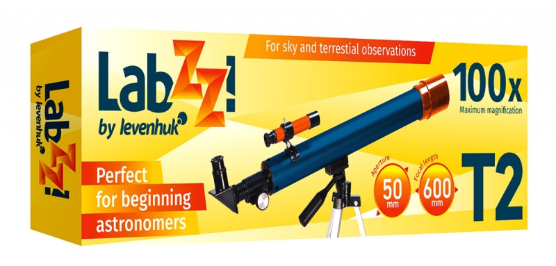 Телескоп Levenhuk LabZZ T2 включает все необходимое для захватывающих астрономических наблюдений. Ваш ребенок будет в восторге от увиденного! Планеты Солнечной системы, далекие туманности и галактики, яркие созвездия и загадочные звездные скопления – все это можно наблюдать в телескоп Levenhuk LabZZ T2. Благодаря входящим в комплект диагональному зеркалу и оборачивающему окуляру изучать можно и наземные объекты. Оба аксессуара правильно ориентируют изображение – делают его неперевернутым – и потому наблюдения становятся более комфортными. Телескоп Levenhuk LabZZ T2 установлен на самую простую азимутальную монтировку. С управлением справится даже самый юный ученый. Для надежности телескоп комплектуется алюминиевой треногой. Она устойчива и не создает лишних колебаний при наблюдениях. Высота треноги регулируется. Телескоп Levenhuk LabZZ T2 дает увеличение до 100 крат прямо «из коробки». Кратность телескопа можно регулировать, меняя аксессуары. Так можно подобрать оптимальное увеличение для изучения самых разных астрономических объектов.