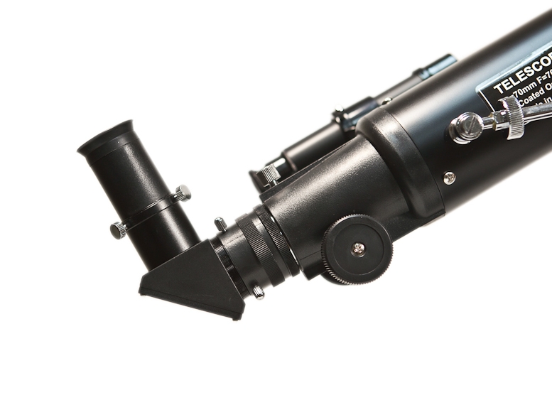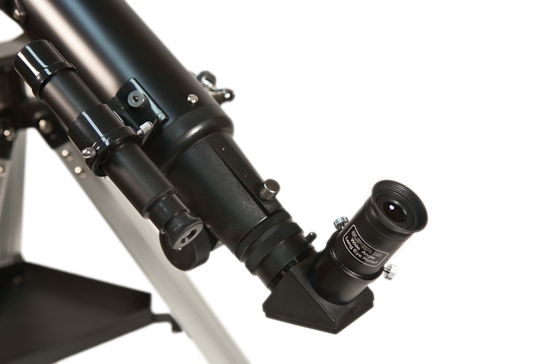 Ахроматический объектив телескопа имеет просветляющее покрытие, которое обеспечивает максимальное светопропускание. Прочная и легкая алюминиевая труба установлена на альт-азимутальную монтировку с интуитивно понятным ручным управлением. Тренога регулируется по высоте и имеет удобную полочку для принадлежностей, а оптический искатель с 6-кратным увеличением позволит быстро навести телескоп на нужный участок неба. С телескопом поставляются 2 окуляра, имеющие поле зрения 52 градуса и фокусные расстояния 10 мм и 25 мм, и дающие с телескопом увеличение 70 и 28 крат. Линзы окуляров изготовлены из стекла и имеют многослойное просветление. Реечное фокусировочное устройство имеет посадочный диаметр под окуляры стандарта 1,25” (31,75 мм), и позволяет использовать с телескопом множество других, имеющихся на рынке, окуляров, помимо входящих в комплект. С помощью прилагаемой линзы Барлоу, увеличение телескопа может быть выведено на предельное полезное увеличение 140 крат. Фокусировочное устройство имеет стандартную Т-резьбу, которая, через дополнительное переходное кольцо, позволяет присоединять к телескопу зеркальную фотокамеру и производить съемку Луны и других ярких объектов.