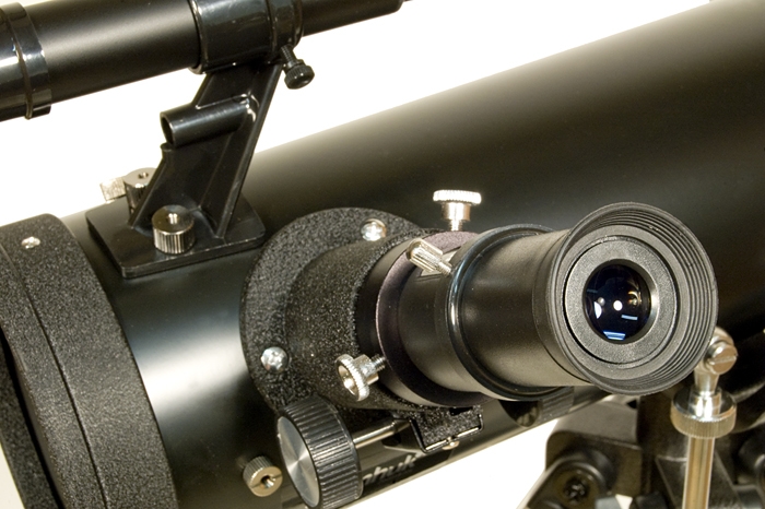 Зеркала телескопа имеют защитное покрытие, которое обеспечит многолетнюю работу инструмента. Прочная и легкая алюминиевая труба установлена на альтазимутальную монтировку с интуитивно понятным ручным управлением. Тренога регулируется по высоте и имеет удобную полочку для принадлежностей, а оптический искатель с 6-кратным увеличением позволит быстро навести телескоп на нужный участок неба. С телескопом поставляются 2 окуляра, имеющие поле зрения 52 градуса и фокусные расстояния 10 мм и 25 мм и дающие с телескопом увеличение 70 и 28 крат. Линзы окуляров изготовлены из стекла и имеют многослойное просветление. Реечный фокусировочный узел имеет посадочный диаметр под окуляры стандарта 1,25” (31,75 мм) и позволяет использовать с телескопом множество других имеющихся на рынке окуляров, помимо входящих в комплект, чтобы получать другие увеличения, вплоть до максимально полезного 150 крат.