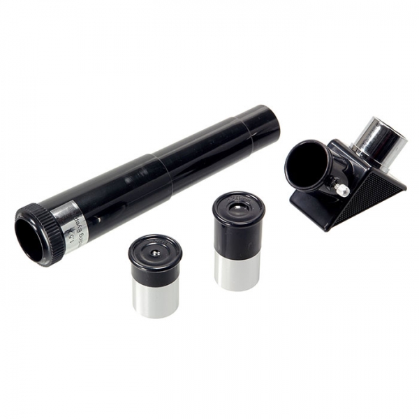 Отличный подарок для вашего ребенка! Возможно, он станет первым научным прибором в его жизни. Его можно использовать и днем и ночью. Днем — как обычную подзорную трубу, а ночью, естественно, по прямому назначению. Телескоп дает прямое (не перевернутое) изображение. Что можно в него увидеть? В него можно увидеть лунные кратеры диаметром больше 10 км, Марс, Сатурн и фазы Венеры. С помощью сменных окуляров (в комплекте 2 шт.), можно получить увеличение от 18х до 90х. Окулярная часть с 90° зеркалом позволяет удобно вести наблюдение, разместив прибор просто на столе (высота штатива 360 мм). Наблюдения днем лучше вести при увеличении 18х (с окуляром 20 мм), тогда ближняя точка фокусировки будет около 5 метров. Прибор удобно укладывается в противоударный двухслойный кейс для переноски. Сборка занимает не больше трех минут. Так с ним удобнее выезжать загород, где и небо чище и лучше видны звезды и окружающие пейзажи.