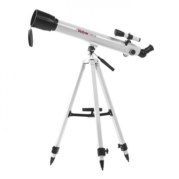 Телескоп Veber 700*70 AZ Белый - это линзовый телескоп (рефрактор), который дает четкое и контрастное изображение, хорошо подходит для путешествий. Просветленный ахроматический объектив диаметром 70мм, собирает в два раза больше света , чем 50мм и позволяет наблюдать не только небесные, но и очень удаленные земные объекты. Картинка резкая, без окрашенности изображения по краю поля зрения. В этот телескоп вы сможете увидеть детали на дисках планет, кратеры Луны размером 5-6 км, многие туманности и звездные скопления (вплоть до 12 m звездной величины). Для земных наблюдений мы рекомендуем использовать окуляр PL-20, с которым увеличение телескопа будет 35x, при этом ближняя точка фокусировки составит 12,5 м. Этот телескоп дает прямое (не перевернутое) изображение. Наличие в окулярном блоке оборачивающей призмы (а не диагонального зеркала, как в аналогичных моделях других фирм), делает изображение изображение не зеркальным (где левое и правое меняются местами), а таким, каким обычно вы видите его невооруженным глазом. Для удобства наблюдения (из положения стоя или сидя), окулярную часть вместе с призмой можно поворачивать, 8 фиксированных положений. С помощью искателя (входит в комплект, увеличение 6х, крепится к телескопу) можно быстро навестись на цель наблюдения. Телескоп снабжен азимутальной монтировкой AZ (металл) белого цвета. Такой монтировкой удобнее пользоваться если вы наблюдаете наземные объекты. Всего одна ручка позволяет управлять прибором и по вертикали и по горизонтали. Имеется фиксатор найденного положения. Телескоп поставляется с алюминиевым штативом с возможностью регулировки высоты. Распорки для ножек служат не только для повышения устойчивости, но и в качестве подставки под полочку для аксессуаров (идет в комплекте). Сумка для переноски, в которую укладывается весь комплект, позволяет безопасно (для оптики и внешнего вида) транспортировать прибор для выездов на природу или при походах в гости.