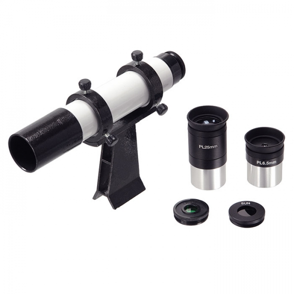 Исполнение телескопа — самое профессиональное. Металлические: корпус, кольца крепления, заглушки, все детали окулярной части, включая подвижные и неподвижные части фокусера. Пластиковый только корпус 6-тикратного искателя. Исполнение телескопа также можно назвать дизайнерским — настолько хорошо сочетаются белый блестящий корпус и окрашенные зеленоватой эмалью части монтировки (включая противовесы) и элементы штатива. Телескоп поставляется с профессиональной монтировкой немецкого типа EQ4 со встроенным искателем полюса (это оптическая трубка с перекрестьем, интегрированная внутрь монтировки). Мощный алюминиевый штатив снабжен металлическими распорками, на которые можно установить столик для аксессуаров. В общем, Veber Polar Star 800×203 очень надежный, устойчивый телескоп для серьезных наблюдений (даже исследований!) с превосходным качеством изображения и весьма разумной ценой.