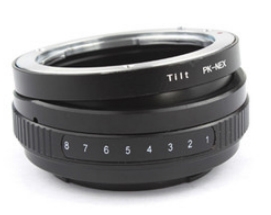 адаптер с наклоном оптической оси, предназначенный для установки объективов с креплением Pentax на фотоаппараты системы Sony E NEX (кроме полнокадровых). Управление диафрагмой и фокусировкой происходит вручную, нет возможности использования автофокусировки, все настройки производятся на объективе. Переходник имеет 8 степеней наклона (от 0 до 8 градусов). Адаптер превращает любой обычный объектив в объектив с наклоном, который используется для коррекции глубины резкости и оптических искажений.