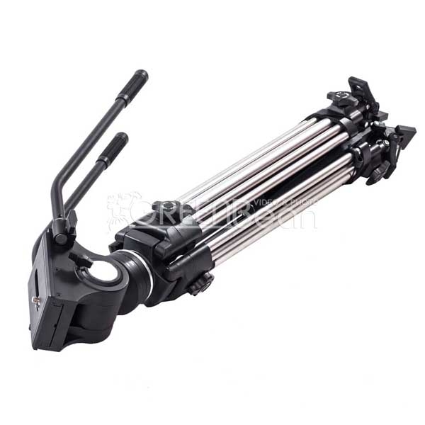 Видеоштатив VideoMaster 320 предназначен для использования с видеокамерами весом до 20 кг, подходит для установки даже мощных кранов. Установка видеоголовы на штатив реализована посредством полусферы 75 мм. Несмотря на сравнительно небольшой размер чаши, на видеоштатив можно устанавливать как тяжелые камеры (до 20 кг.), так и довольно мощные краны. Достигнуто это за счет того, что видеоголова имеет достаточно простую, но массивную конструкцию – специально под установку тяжелого оборудования. Видеоголова имеет возвратный механизм в горизонтальное положение (в вертикальной плоскости) и предустановленную (нерегулируемую) систему демпфирования в двух плоскостях, которая дает возможность плавной съемки без рывков. Голова снабжена также фиксаторами вертикального и горизонтального углов наклона, угол наклона головы: + 85 ° / -85 Имеется и пузырьковый уровень. Для установки камеры или аксессуаров используется площадка размером 150х80 мм. с установочным винтом с резьбой 3/8". Площадка быстросъемная (с предохранителем) и покрыта противоскользящим покрытием,диапазон перемещения - 120 мм. Для облегчения управления головой с тяжелой камерой или установленным краном, на голове установлены сразу две рукоятки. Длина каждой составляет 550 мм. Общий вес видеоштатива с головой – 5 кг. Длина в сложенном виде составляет 910 мм. Минимальная высота штатива составляет 545 мм., а максимальная – внушительные 1745 мм. Трехсекционные штативные ноги с рамочной конструкцией выполнены из стали и оснащены металлическими винтовыми зажимами с крестообразными рукоятками-фиксаторами. Для усиления штатива используется нижняя (регулируемая) растяжка, крепящаяся на ноги резиновыми петлями. Ноги снабжены стандартными наконечниками для установки на тележку или другие аксессуары. Производитель гарантирует стабильную работу всех механизмов штатива, включая демпферы видеоголовы, в диапазоне температур от -5 ° C до 40 ° C.