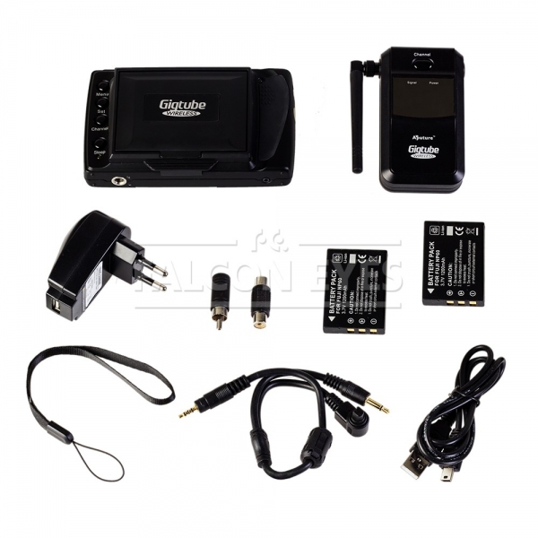 Видоискатель Aputure Gigtube Wireless GW3C позволяет дистанционно передавать изображение с матрицы фотоаппарата на удаленный до 100 м беспроводной монитор и управлять затвором камеры. Передатчик из комплекта GW3C предназначен для Canon 7D/50D/40D (возможно использование с другими камерами, соответствующий кабель приобретается отдельно). Устанавливается в горячий башмак камеры, соединяется с камерой с помощью проводов из комплекта. Передача графических данных осуществляется через радиоканал с частотой 433 МГц (сигнал спуска затвора передается на частоте 2,4 ГГц).