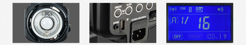 3 режима пилотного света (ВЫКЛ, PROP (автоматически подстраивающийся под мощность вспышки) и произвольно устанавливаемый в %)