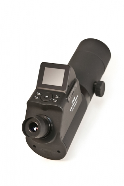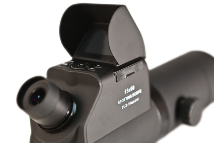 В зрительную трубу встроена цифровая камера разрешением 3 мегапикселя. Снимки и видео сохраняются на внутреннюю память прибора (32 Мб) или на карту памяти (есть слот для сменных SD-карт). Просматривать полученные снимки можно на встроенном LCD дисплее с диагональю 2” или на компьютере, к которому труба подключается через порт USB. Дисплей трубы снабжен козырьком, который прикрывает его от прямых солнечных лучей, что положительно сказывается на контрастности изображения. Питание камеры производится от батареек (или аккумуляторов) формата АА, которые легкодоступны практически везде. Зрительная труба обеспечивает увеличение 15х, при котором начинает сказываться дрожание рук, поэтому для максимального удобства, особенно при длительных наблюдениях, желательно использовать штатив. Труба имеет гнездо с резьбой диаметром 1/4”, позволяющее устанавливать ее на любом стандартном фотоштативе.