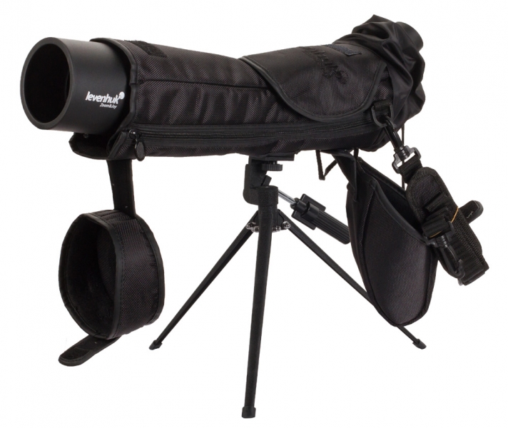 Еще один плюс зрительной трубы Levenhuk Blaze 50 PLUS – продуманная до мелочей конструкция. Мягкий резиновый наглазник позволяет смотреть в трубу с максимальным комфортом. Кроме того, он отсекает боковые засветки. Благодаря большому выносу выходного зрачка удобно вести наблюдения даже в очках – обычных или солнцезащитных. Труба изготовлена в прочном, но очень легком противоударном корпусе. Благодаря его герметичной конструкции влага не проникает внутрь. Специальный чехол надежно защищает трубу от грязи и брызг не только при хранении и переноске, но и в процессе наблюдений. В полевых условиях и в непогоду чехол не обязательно снимать, его достаточно просто расстегнуть. Чтобы картинка не дрожала на высоких увеличениях, зрительную трубу рекомендуется устанавливать на треногу. В комплекте Levenhuk Blaze 50 PLUS идет устойчивый металлический штатив, позволяющий надежно зафиксировать трубу в нужном положении.